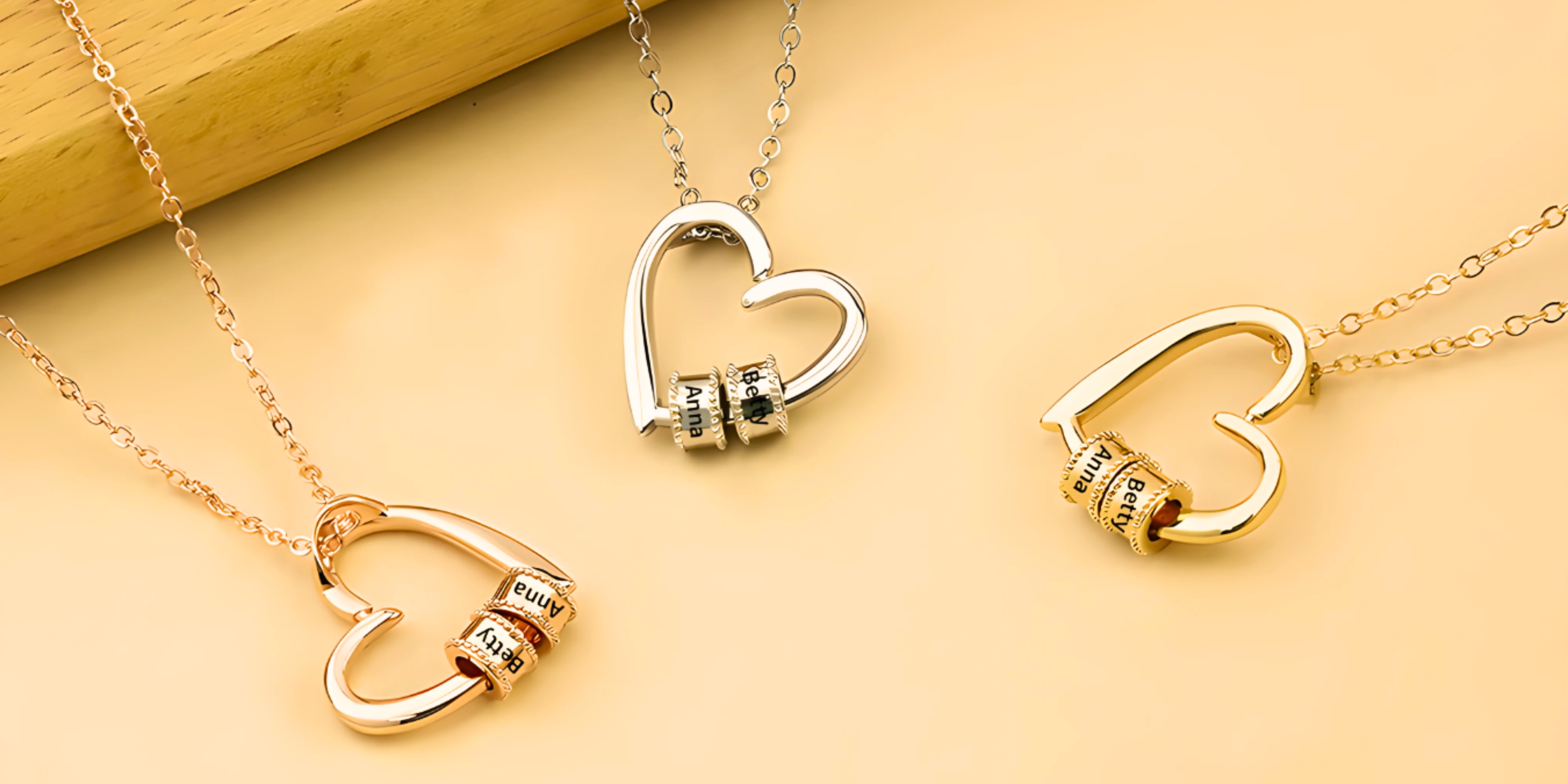 Our signature heart-shaped necklaces, gracefully encircled by elegant rings, offer a timeless tribute to devotion. Whether it’s your partner, child, parent, or a dear friend, you can carry their name close to your heart-literally. With personalized engraving, your jewelry transforms into a unique keepsake, capturing the names and moments that matter most.